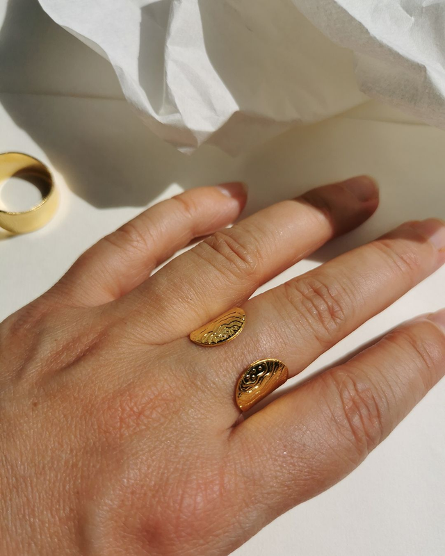 Histoire : Inspirées par les réseaux de la nature (nervures des feuilles, du bois, ramifications, ondulations, zébrures, sillons, stries, constellations…), ces bagues capturent l’imperfection organique du vivant. Chaque pièce naît d’un dessin gravé à la main, puis révélée par un bain d’acide : le métal, en se rétractant, crée un réseau unique de nervures dorées, comme une empreinte singulière.
